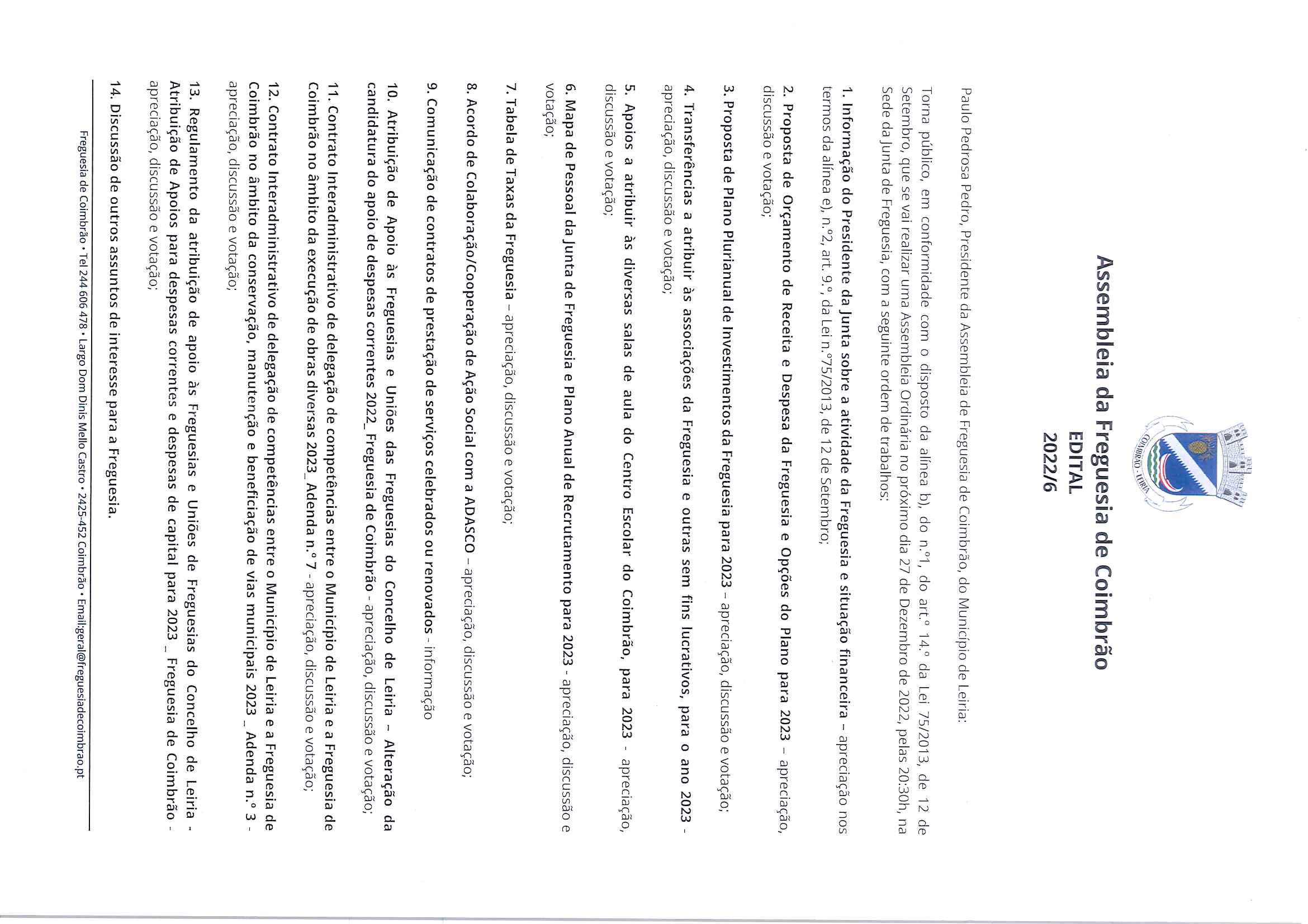 Edital - Convocatória para Assembleia de Freguesia - Sessão Ordinária