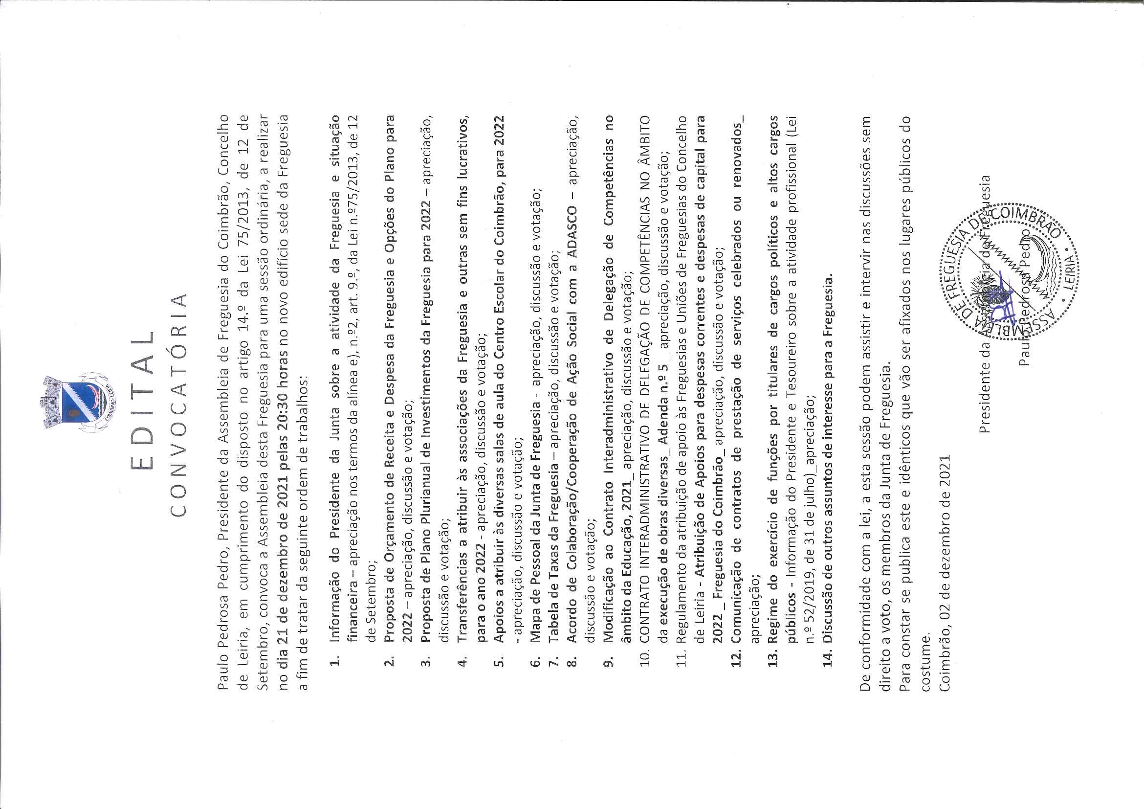 Edital - Convocatória Assembleia de Freguesia