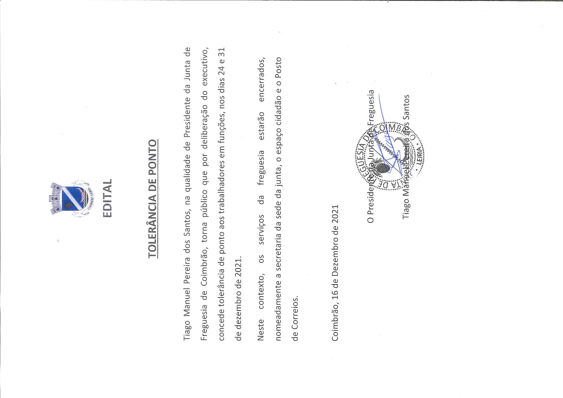 Edital - Tolerência de Ponto a 24 e 31 de dezembro de...