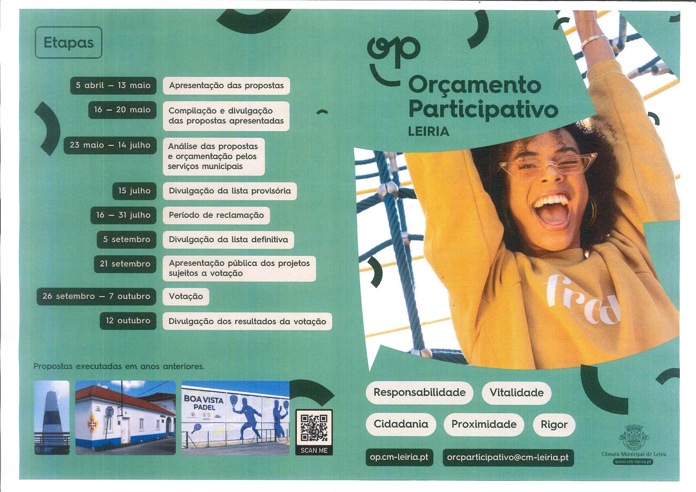 O Orçamento Participativo tem como objetivos promover a participação informada, ativa e construtiva dos cidadãos e incentivar o diálogo entre os munícipes e os eleitos locais, bem como adequar as políticas públicas municipais às necessidades e expectativas da população.